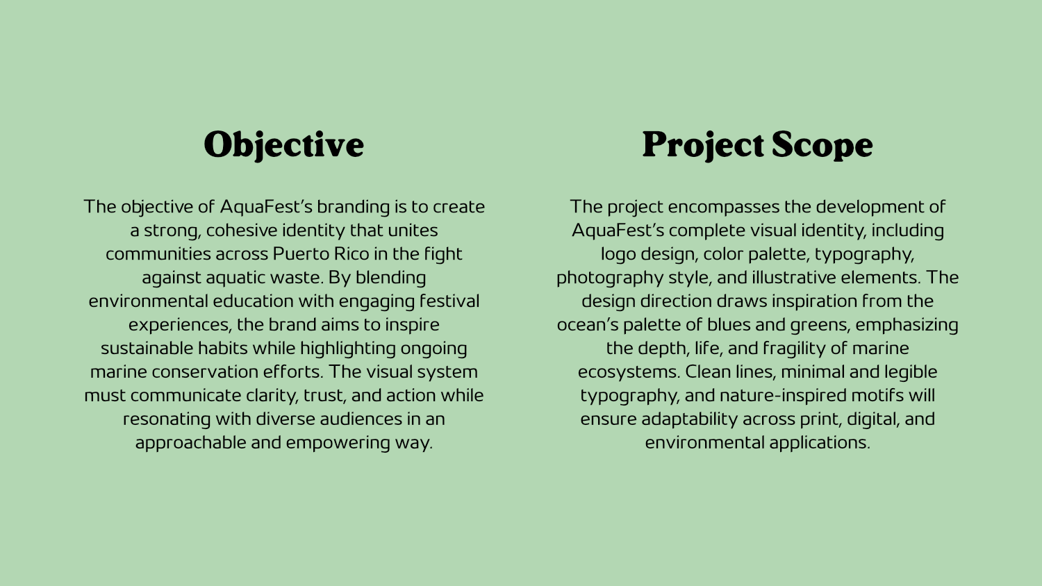 The brand identity uses a simple, clean logo paired with a color palette inspired by water and marine life. These visual elements reflect the festival’s mission of ocean conservation and were developed to create a cohesive system that could be used across promotional materials, signage, and social media content.